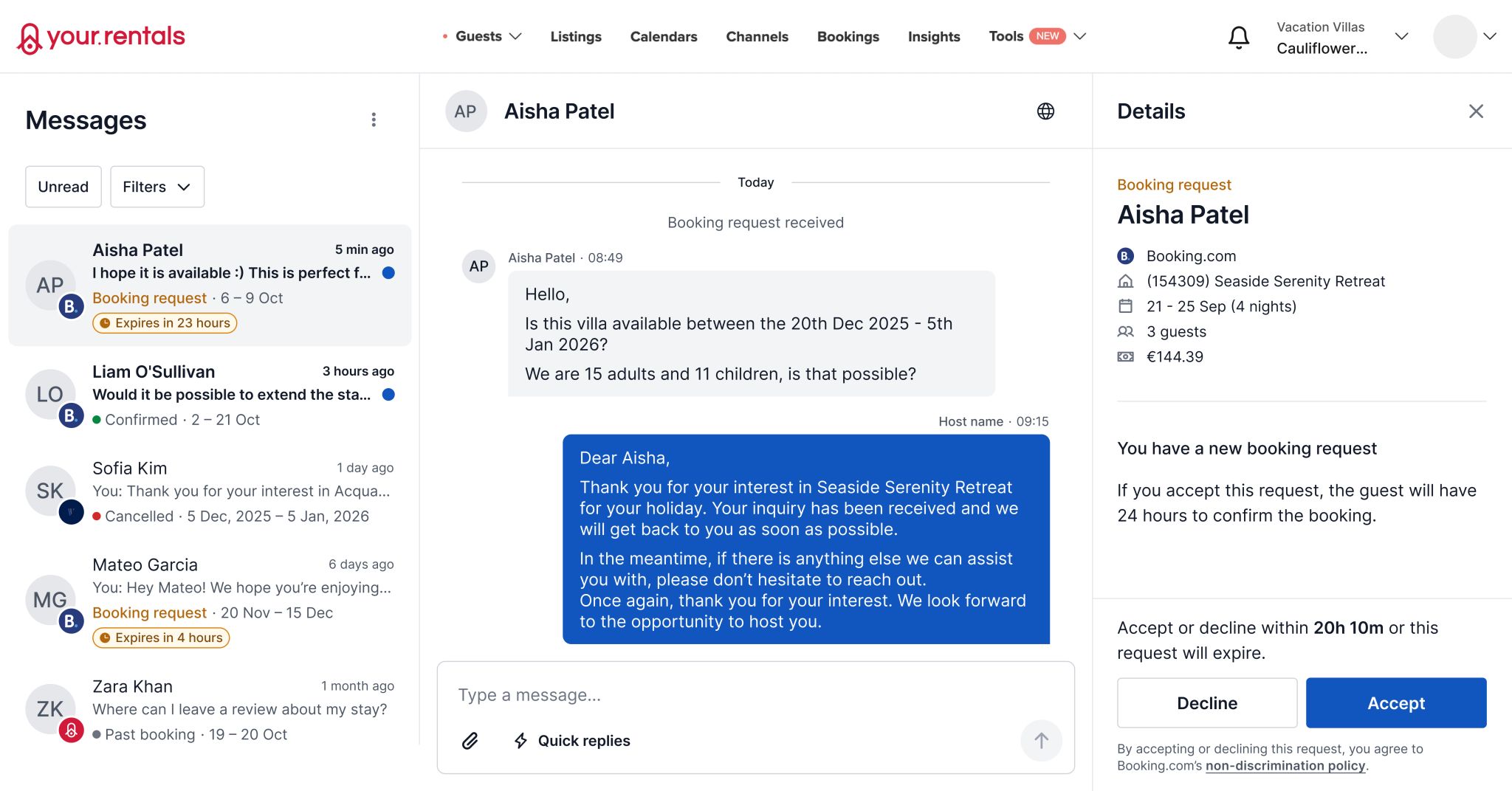 Your.Rentals is a SaaS platform for short-term rental property managers. Hosts use messaging daily to handle guest inquiries, confirm bookings, and coordinate stay details.